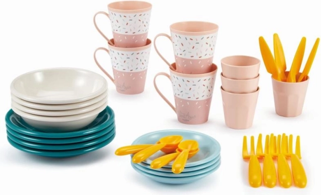 Šis plastikinis indų rinkinys idealiai tinka visiems, norintiems surengti neformalų pikniką ar popietę sode. 32 dalys šiame rinkinyje: lėkštės, desertinės lėkštelės, dubenėliai, puodeliai, stiklinės ir stalo įrankiai – viskas iš lengvo ir patvaraus plastiko. Praktiška dėžė palengvina nešiojimą, o vaikai gali saugiai prisidėti ruošiant valgį. Dėžė taip pat tarnauja kaip serviravimo staliukas.