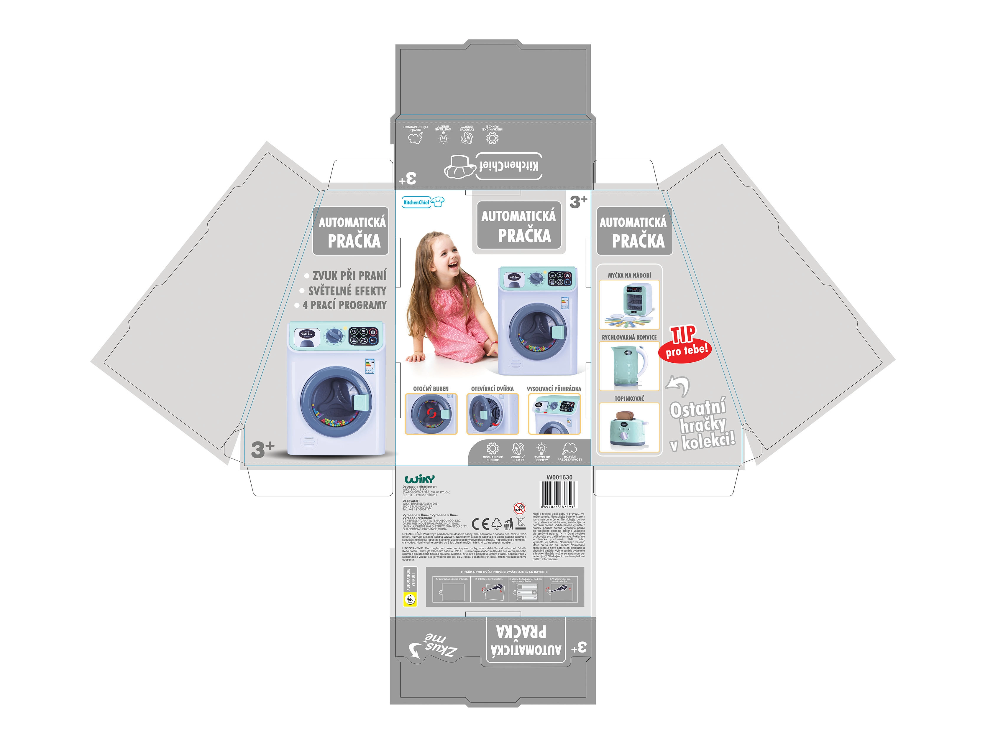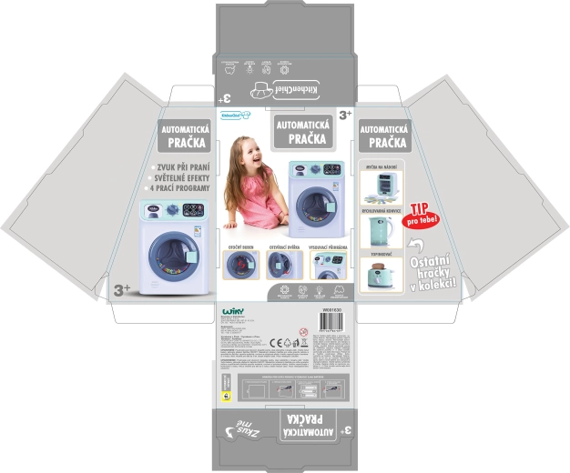 Linksma vaikiška skalbimo mašina su realistiškomis funkcijomis pavers kiekvieną lėlyčių drabužėlių skalbimą žaidimu. Siūlo šviesos ir garso efektus, besisukantį būgną, programos ir temperatūros pasirinkimą bei skyrelį skalbimo milteliams. Idealu vaikams nuo 3 metų, baterijos komplekte.