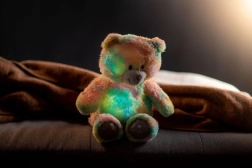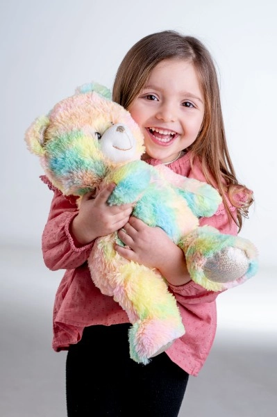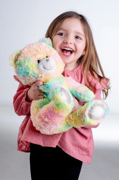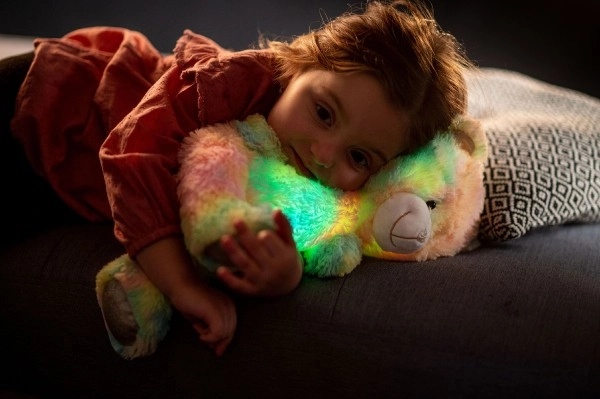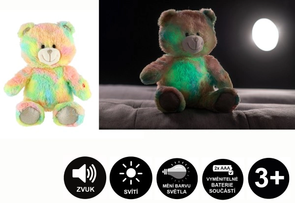 Meškiukas ne tik minkštutis lietimui, bet ir apšviečia tamsą kintančiomis spalvomis, kurdamas magišką nuotaiką. Paspaudus letenėlę, pradeda skambėti atpalaiduojanti melodija, kuri nuramina kiekvieną vaiką.