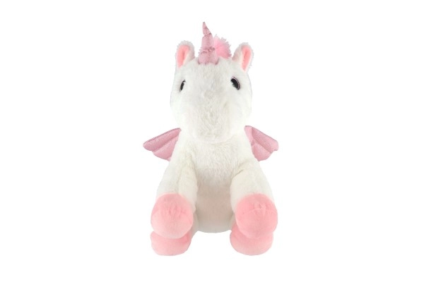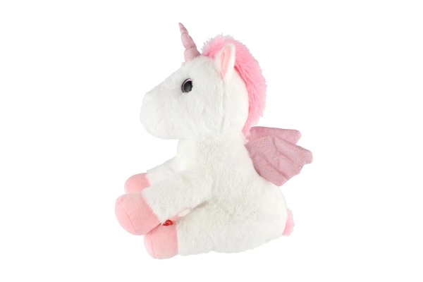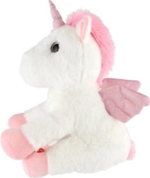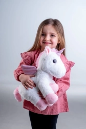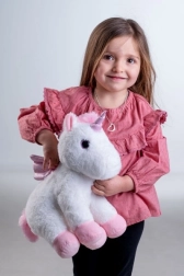 Pliušinis vienaragis su švelniu baltu kailiu ir rožinėmis detalėmis puikiai tinka glaustytis ir guosti.