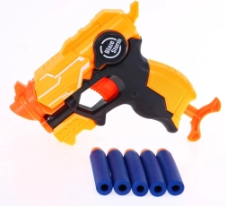 Komplekte yra pistoletas ir 5 minkšti šoviniai, todėl vaikai gali mėgautis smagiu šaudymu.