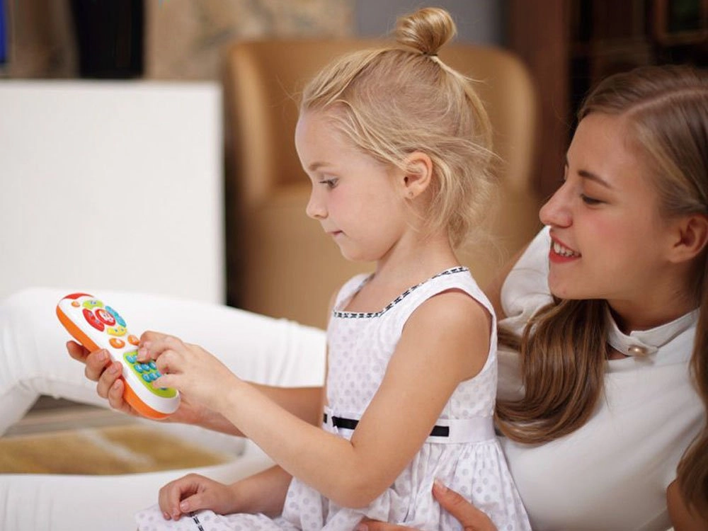 Vaikas gauna savo „pultelį“ ir gali saugiai „perjunginėti kanalus“. Angliškai kalbantis žaislas padeda mokytis pirmųjų žodžių tarimo.