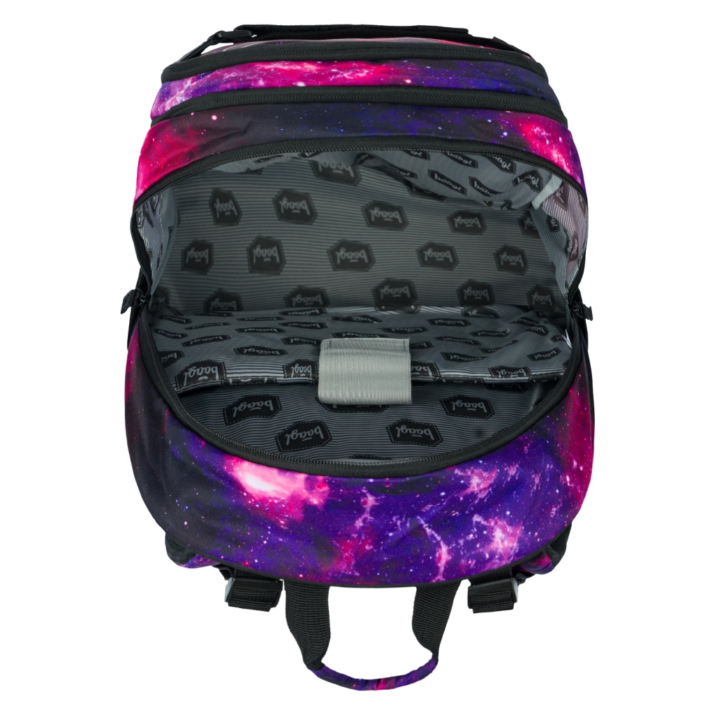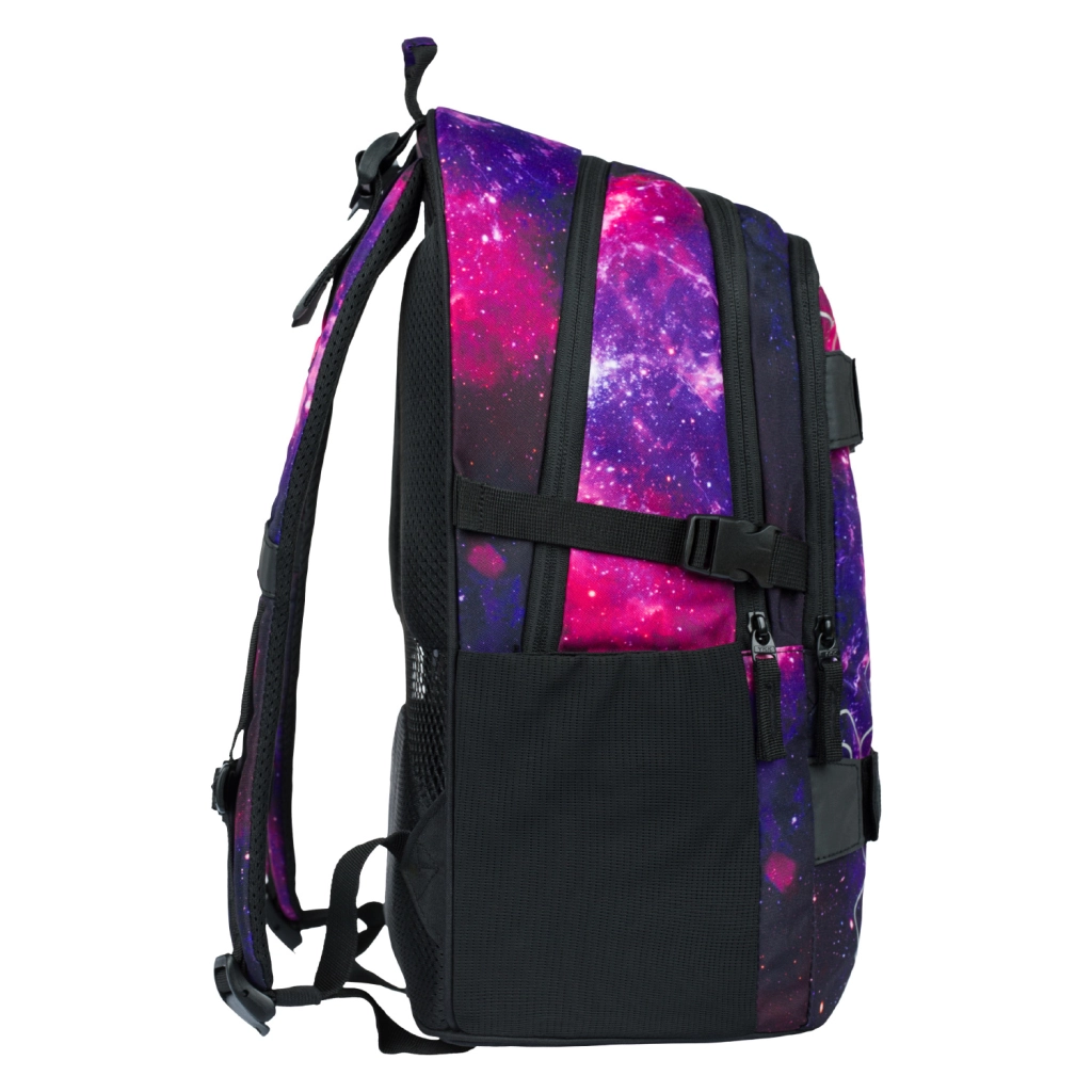 BAAGL Skate Galaxy – apgalvota mokyklinė kuprinė mokiniams, kurie vertina praktiškumą ir stilių. Trys atskiri skyriai palengvina tvarkingą vadovėlių ir sąsiuvinių sudėjimą, yra vidinis organizatorius ir paminkštinta kišenė 15" nešiojamam kompiuteriui arba planšetei. Priekyje įrengti du dirželiai riedlentei pritvirtinti, tad lenta visada po ranka.