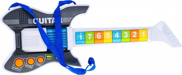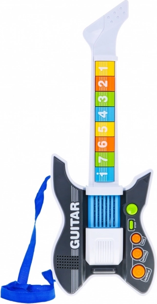 Ši vaikiška elektrinė gitara skatina natūralų muzikinį vystymąsi ir kūrybiškumą. Dėl aiškių mygtukų, šviesos efektų ir aukštį reguliuojamo stovelio su mikrofonu vaikai lengvai taps namų scenos žvaigždėmis. Žaidimas lavina ritmą, koordinaciją ir saviraišką.