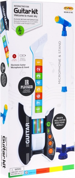 Rinkinyje yra mikrofonas ant stovelio, kurį galima prijungti prie gitaros. Vaikai gali dainuoti ir akompanuoti sau kaip tikri atlikėjai.