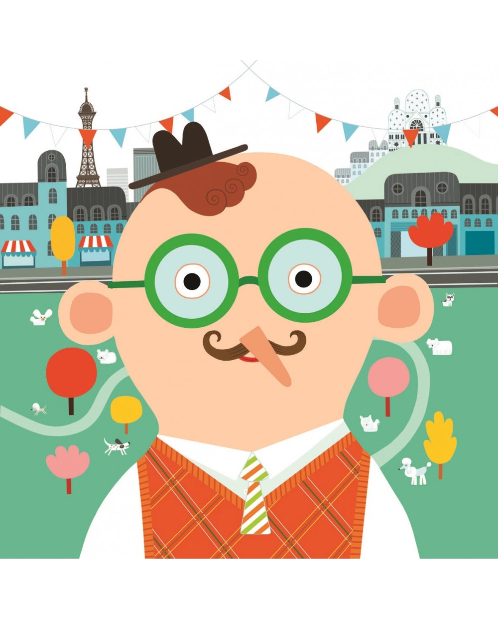 Linksmas kūrybinis rinkinys mažiesiems menininkams suteikia ir pramogą, ir fantazijos lavinimą. Iš 16 šablonų vaikai susikurs savo veidus naudodami 240 nuimamû lipdukų – akis, nosis, burnas, akinius, ūsus ir auskarus. Daugkartinio naudojimo pramoga skatina smulkiąją motoriką, kūrybiškumą ir pasakojimų kūrimą. Tinka vaikams nuo 3 metų.