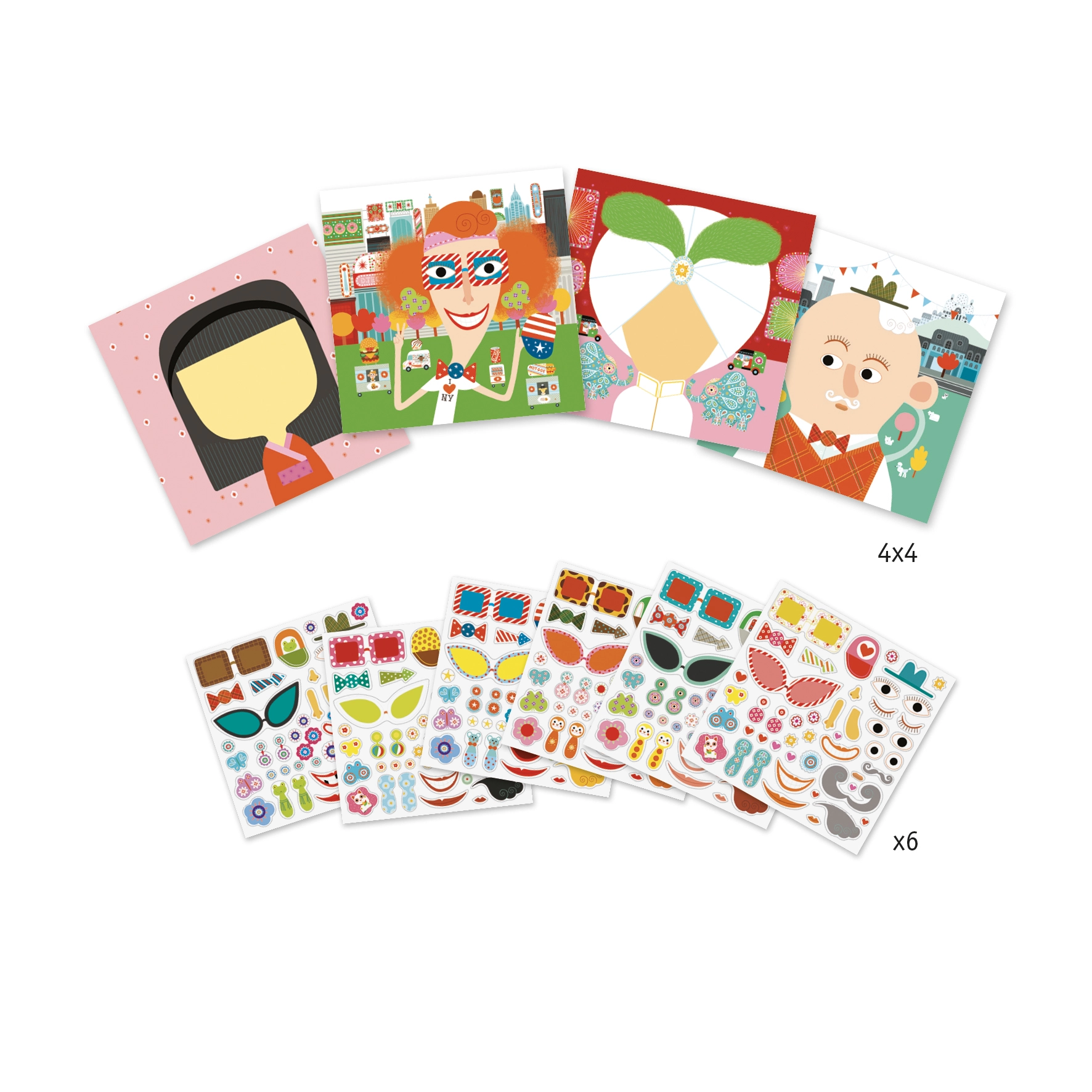 Paverskite paprastus veidus originaliais kūriniais. Šis Djeco kūrybinis rinkinys apima 16 lapų su šablonais ir gausų rinkinį – 240 nuimamų lipdukų, su kuriais vaikai lengvai derins išraiškas, aksesuarus ir spalvas. Dėl pakartotinio klijavimo galima išbandyti nesuskaičiuojamą daugybę variantų, lavinti fantaziją ir kantrybę.