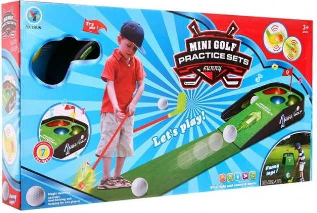 Ši mini golfo rinkinys turi viską, ko reikia, kad galėtumėte žaisti golfą bet kada ir bet kur. Dėl šviesos ir garso efektų suteikiama išskirtinė patirtis, kuri sudomins tiek mažus, tiek didelius žaidėjus.