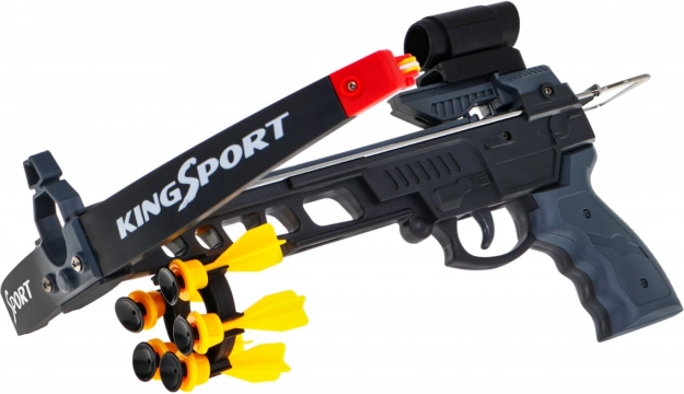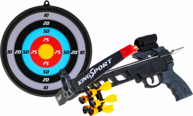 Linksmos ir saugios pramogos: vaikiškas arbaletas nuo 6 metų su 7 dalių rinkiniu. Komplekte taikinys, 5 strėlės su siurbtukais ir integruotas taikiklis tikslesniam nusitaikymui. Puikiai tinka namuose ir lauke – lavina tikslumą, akių–rankų koordinaciją ir sutelktą dėmesį.