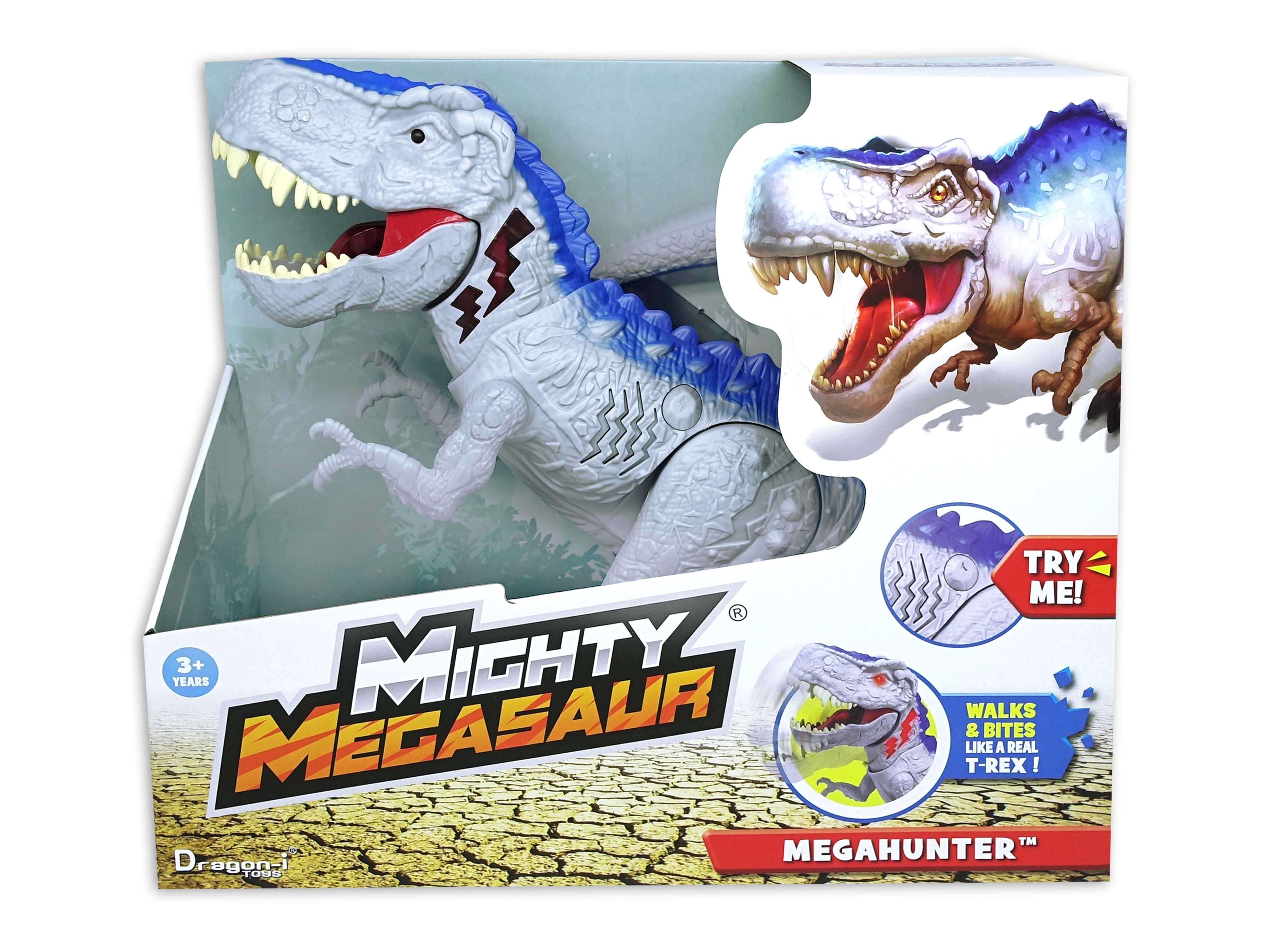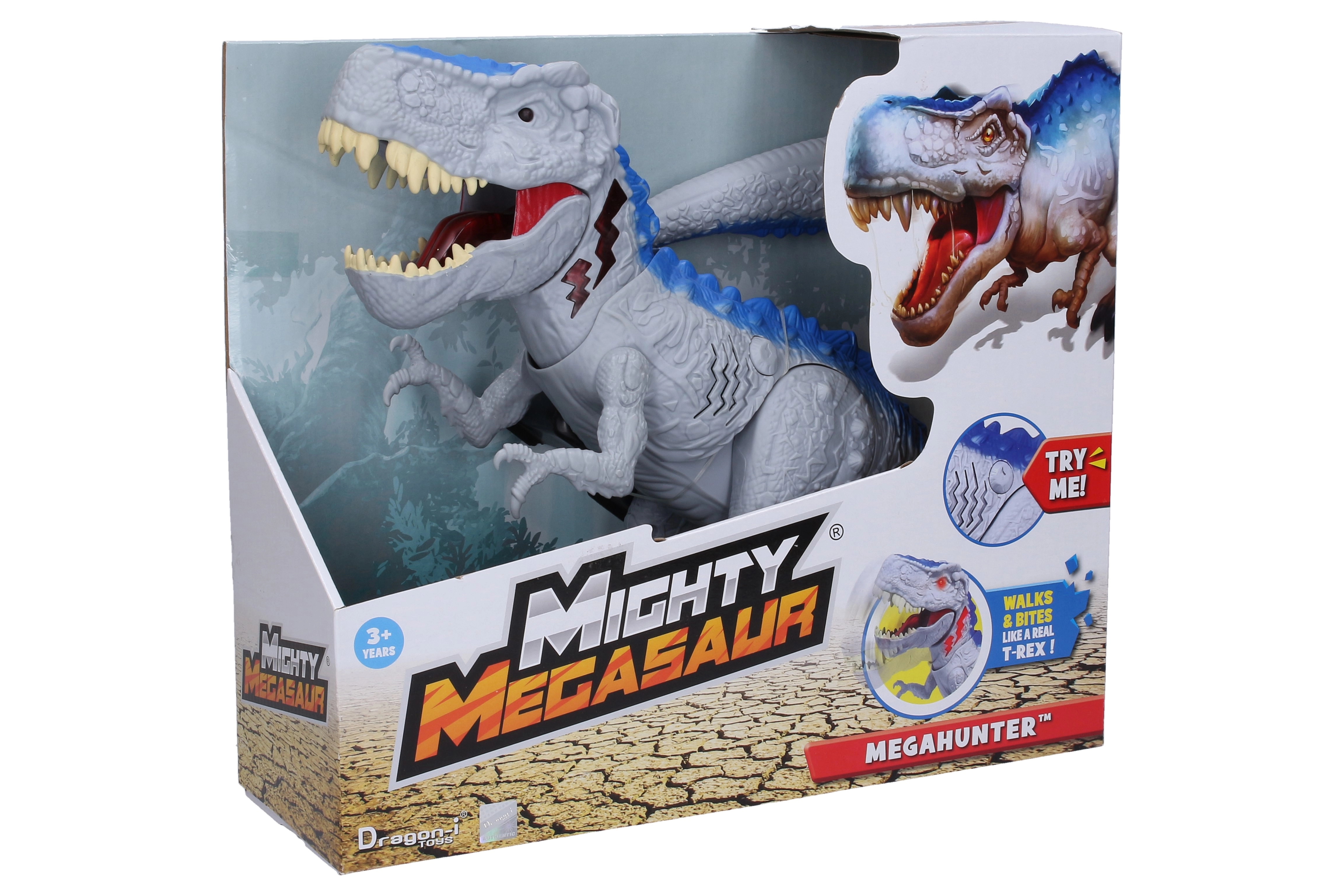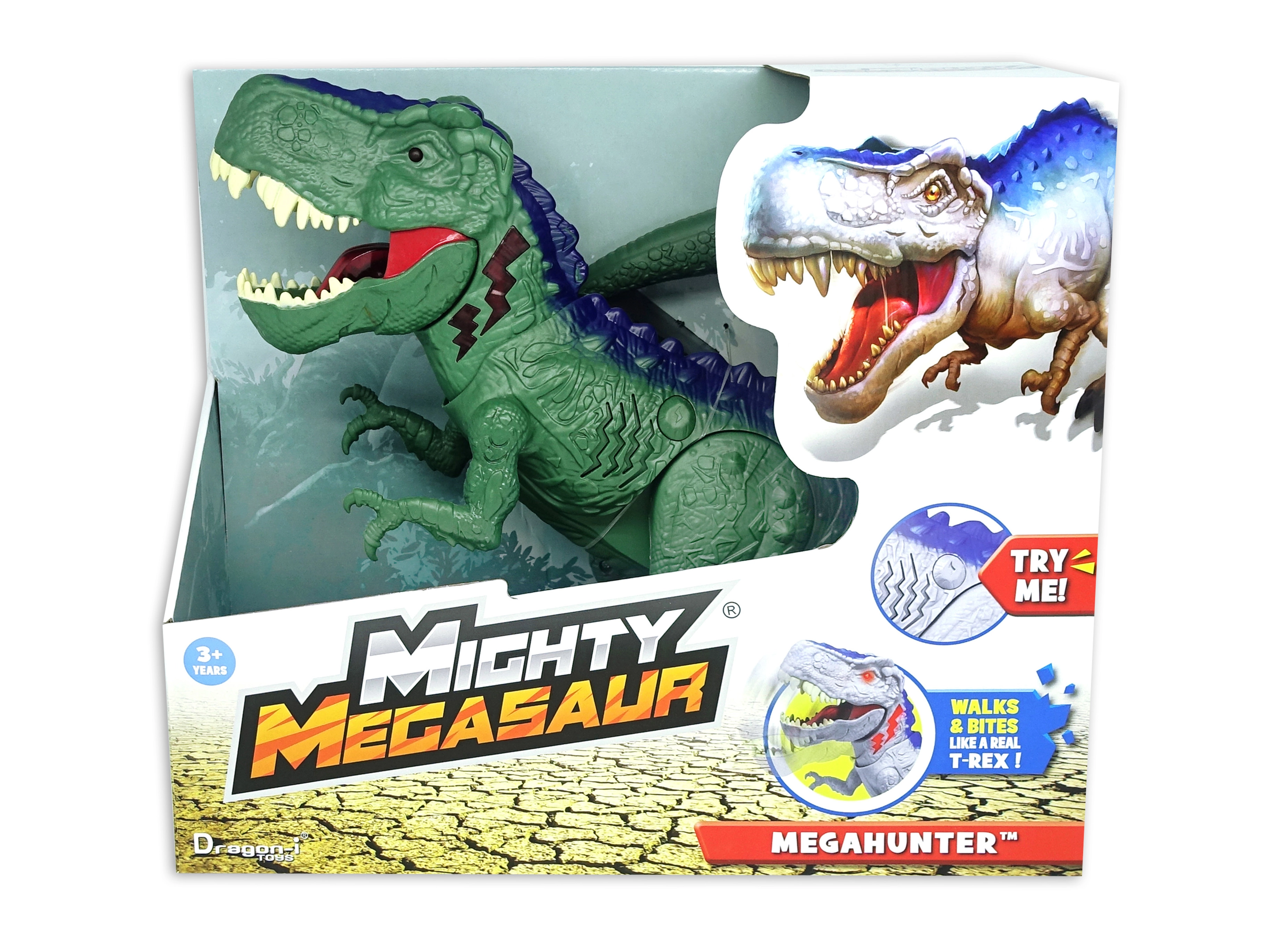 Dinozauras Mighty Megasaur Megahunter sužavės kiekvieną vaiką savo realistiška išvaizda, įspūdingais žandikauliais ir dinamiškais judesiais. Šis žaislas aprūpintas šviesos ir garso efektais, kurie sustiprina priešistorinių laikų atmosferą žaidžiant. Dėl judančių funkcijų žaislas gali sukioti galvą ir uodegą, todėl vaikams susidaro įspūdis, kad jie turi reikalą su gyvu dinozauru.