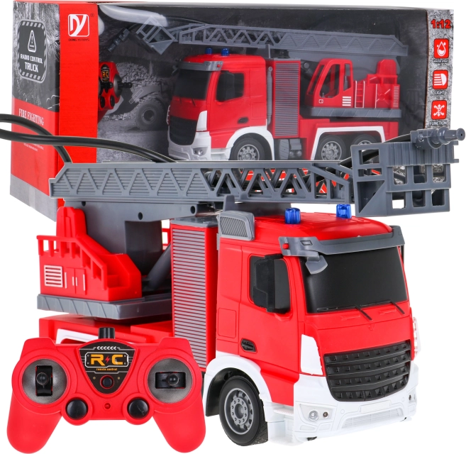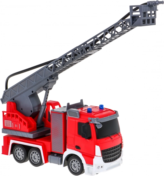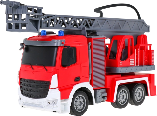 Didžiausias akcentas – vandens žarna, iš kurios tikrai teka vanduo – puikiai tinka saugiems ir kūrybiškiems gaisro gesinimo scenarijams. Kopėčia gali būti ištraukiama, pakeliama ir nuleidžiama bei pasukama 180°, tad pasieksite ir „aukščiausius“ langus. Valdymas 2,4 GHz dažniu užtikrina stabilų signalą be trukdžių.