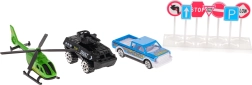 Rinkinį papildo didelis žaidimų kilimėlis su keliais, praplečiantis žaidimų pasaulį, ir du metalinių automobilių modeliai masteliu 1:64. Dėl intuityvaus valdymo žaislas tinka vaikams nuo 3 metų ir lavina motoriką, vaizduotę bei pagrindinius eismo taisyklių pagrindus.