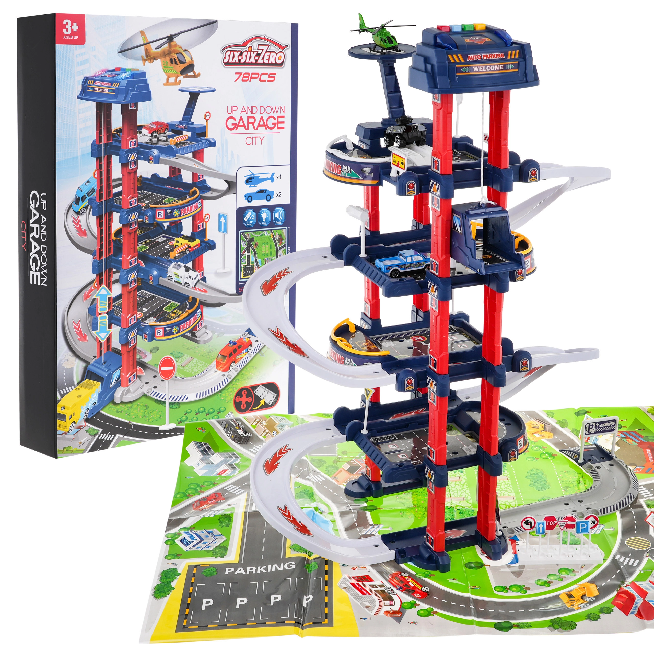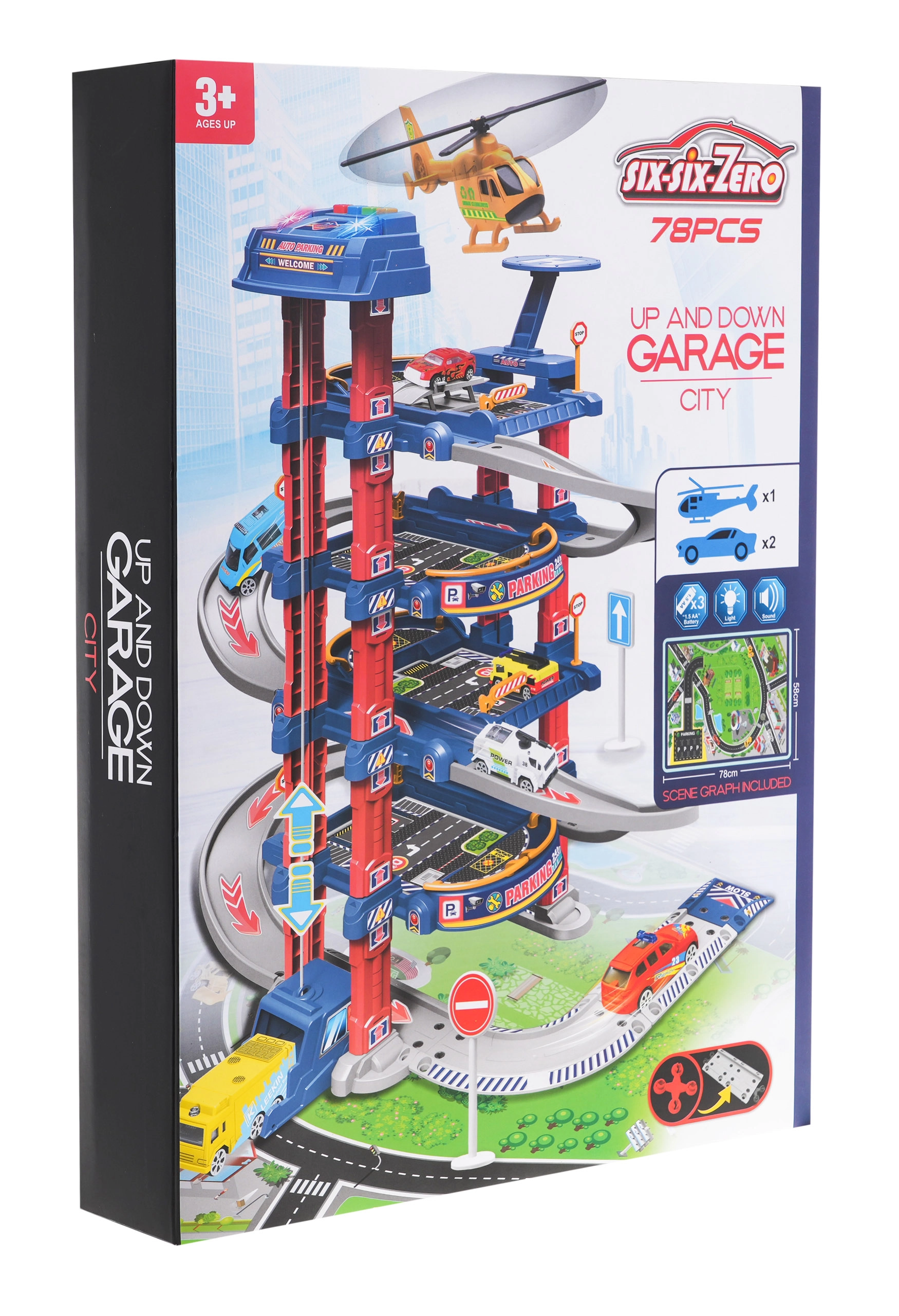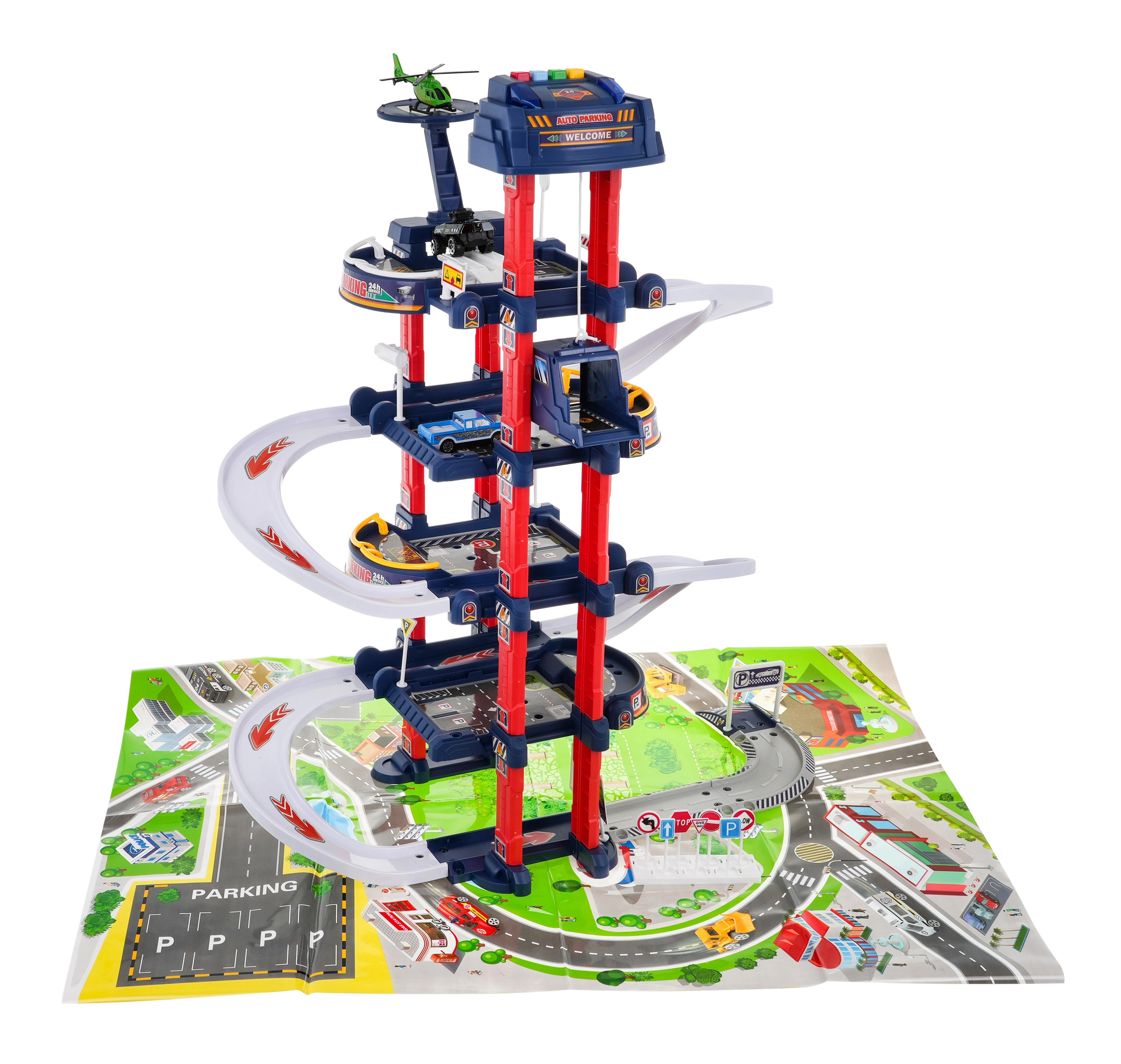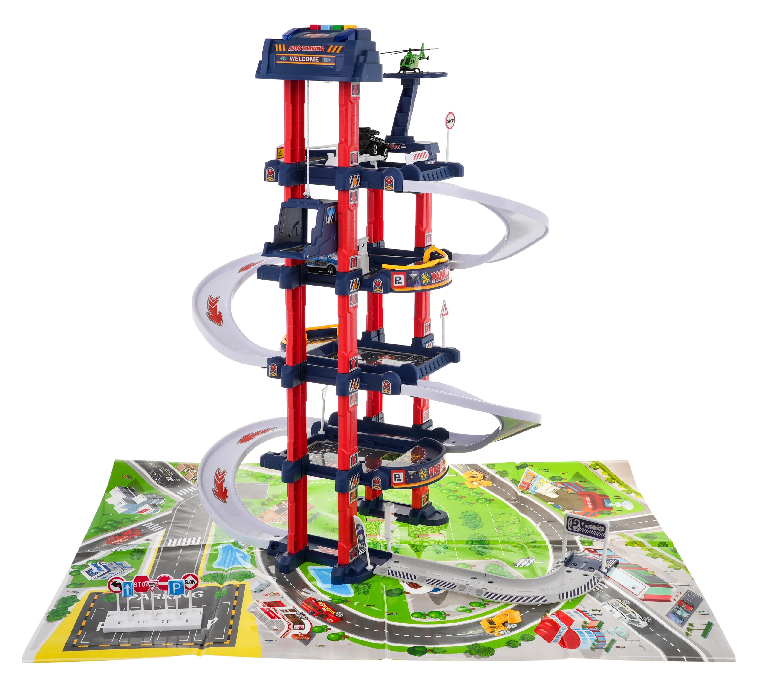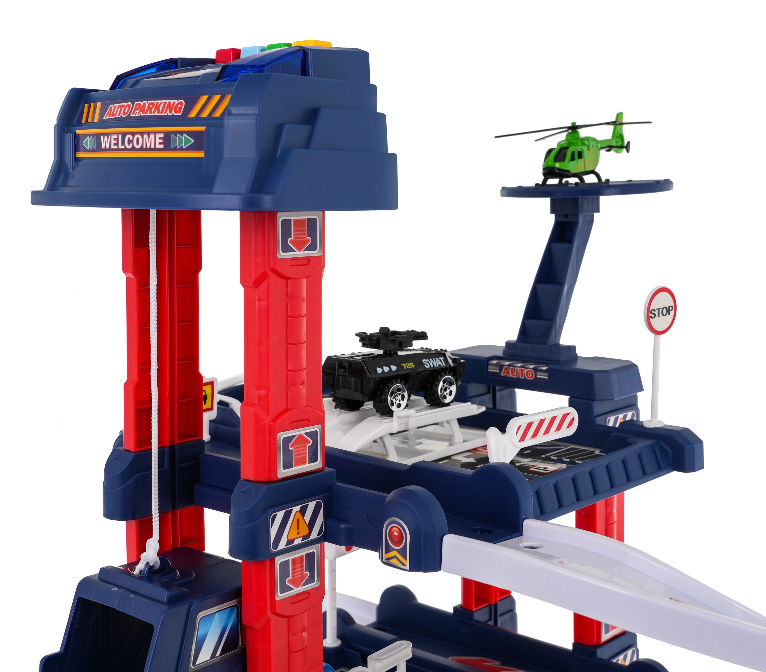 Daugiaaukštė parkavimo aikštelė siūlo stovėjimo vietas, degalinę, automobilių keltuvą ir heliportą. Valdymo pultas su spalvotais mygtukais valdo keltuvą ir įjungia efektus: raudonas mygtukas leidžia keltuvą žemyn, geltonas kelia aukštyn. Mėlynas mygtukas leidžia policijos, gaisrininkų, greitosios, užvedimo ir šaudymo garsus, o žalias mygtukas įjungia signalą. Pulte mirksi mėlynos ir raudonos šviesos, kurios sustiprina žaidimo atmosferą.