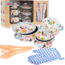 Šis kruopščiai pagamintas ir patvarus aliumininis virtuvės rinkinys vaikams suteikia puikią galimybę žaisti „virėjus“. Rinkinys skirtas vaikams nuo 3 metų ir susideda iš 10 dalių: puodų su dangčiais, virtuvinių įrankių ir pirštinės.