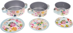 Rinkinyje yra trys aliumininiai puodai su dangčiais, puikiai tinkantys įvairiems „virimo“ žaidimams.
