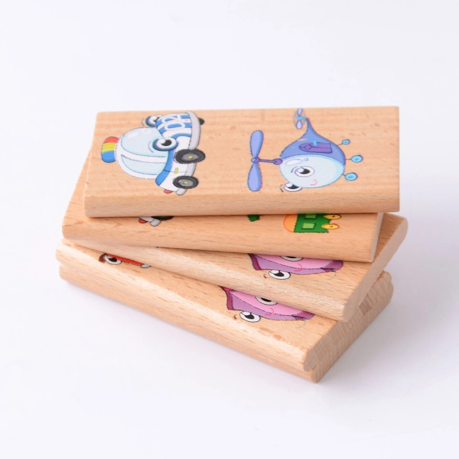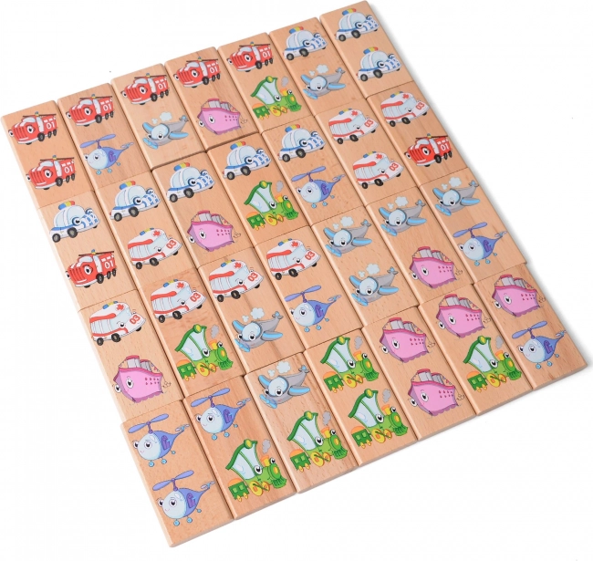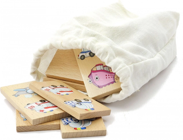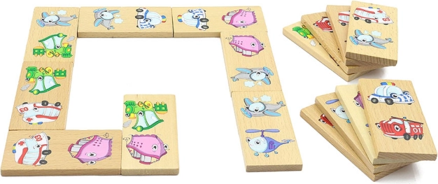 Medinis domino XXL – puikus žaislas vaikams, kurie mėgsta mokytis ir atrasti naujus dalykus. Kiekvienoje iš 28 kaladėlių yra iliustracijos, padedančios vaikams atpažinti įvairias transporto priemones, tokias kaip gaisrinė, greitoji pagalba ir kitos.