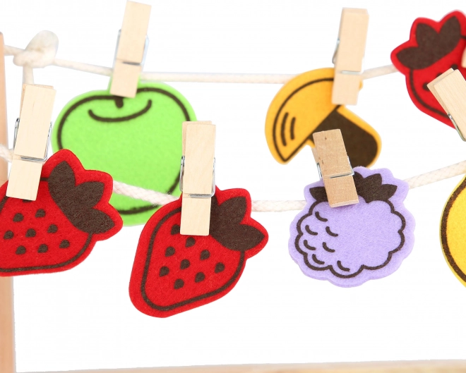 Įtraukite šį nuostabų Montessori edukacinį žaislą į vaikų kambarį ir stebėkite, kaip jie atranda džiaugsmą “džiovinant vaisius” ir daržoves su segtukais. Šis žaislas sukurtas taip, kad suteiktų vaikams netradicinį pažinimo ir žaismingo mokymosi būdą.