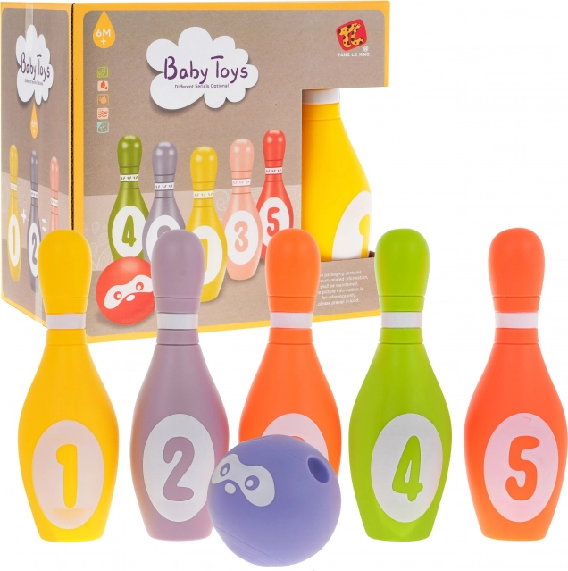 Žaidimų rinkinys patiems mažiausiems nuo 6 mėnesių: 5 minkšti, saugūs kūgeliai ir lengvas kamuoliukas gražių pastelinių spalvų. Kiekviename elemente yra cypliukas dar daugiau linksmybių, o kūgeliai yra sunumeruoti 1–5 žaismingam mokymuisi. Nebijo kritimų, neturi aštrių briaunų, o dėl netoksiško putplasčio idealiai tinka mažoms rankytėms namuose ir lauke.