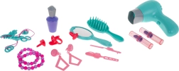 Komplekte yra saugus džiovintuvas su 1× AA baterija, kuris švelniai pučia ir skleidžia realistiškus garsus – idealu žaidžiant kirpyklą.