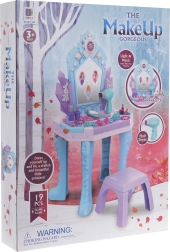 Rinkinį papildo kėdutė, papuošalai ir kosmetikos aksesuarai – viskas saugu ir pritaikyta mažoms rankytėms. Praktiškos staliuko dėtuvės priekyje ir šonuose padeda visus lobius laikyti savo vietoje.