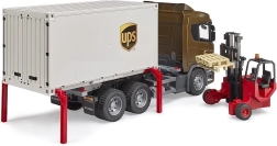 BRUDER SCANIA R serijos modelis išsiskiria komforto ir patvarumo deriniu. Dinamiško dizaino kabina turi atidaromas duris, nulenkiamus išorinius veidrodėlius ir yra paruošta papildyti šviesos ir garso moduliu. Konteinerinė antstata yra visiškai keičiama – dėl atraminių kojelių ją lengvai atkabinsite ir pakelsite, kad vilkikas galėtų išvažiuoti.