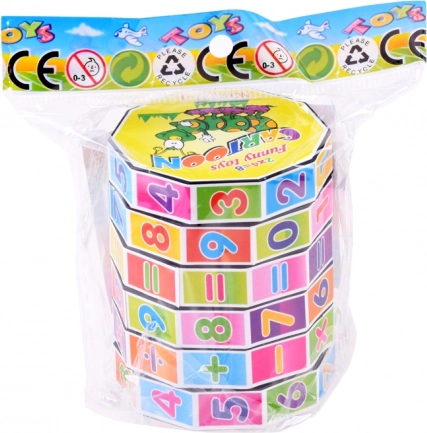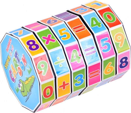 Spalvingas edukacinis žaislas cilindro formos su pasukamais žiedais padeda vaikams lavinti sudėtį, atimtį, daugybą ir dalybą. Kompaktiška ir smagi priemonė ugdo loginį mąstymą, smulkiąją motoriką ir skatina mokymąsi žaidžiant.
