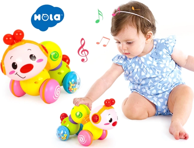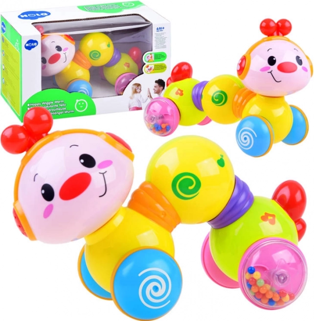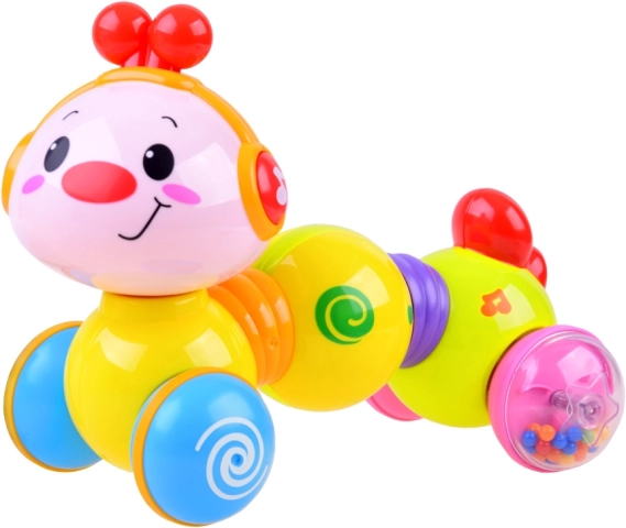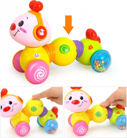 Interaktyvi važinėjanti vikšrinukė Happy Wiggle Worm – idealus žaislas kūdikiams ir mažyliams. Paspaudus nugarą, vikšrinukė įsitempia ir pajuda pirmyn lygiu paviršiumi, o galvutė keičia spalvas ir skamba malonios melodijos. Pasukama galva skatina smalsumą ir lavina smulkiąją motoriką.