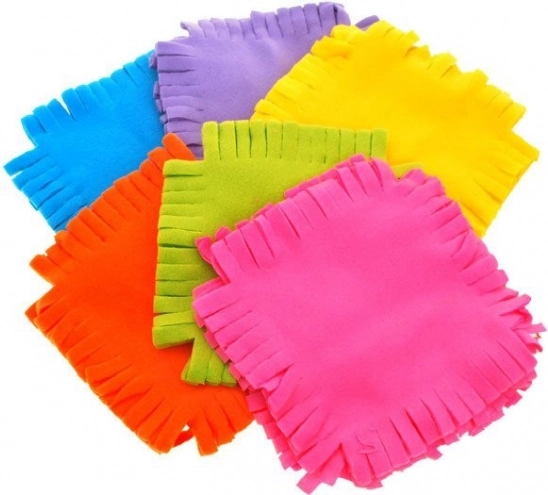DIY rinkinys „Pasidaryk pats“ patchwork pledui kurti – puikus pasirinkimas visiems mažiesiems kūrėjams. Kiekvieno minkšto fliso kvadratėlio dydis yra apie 23 × 23 cm, o surišus kutelius tarpusavyje gaunamas jaukus, šiltas ir žaismingai spalvingas pledas.