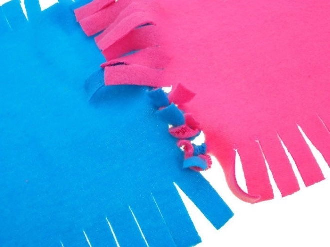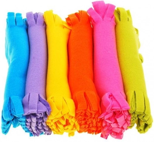 Kiekvienas gabalėlis turi paruoštus kutelius – kvadratėlius tereikia tarpusavyje surišti ir pledas paruoštas be adatos ir siūlų. Tinka net pradedantiesiems.