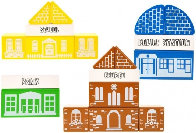 Sudėtyje yra kaladėlių visam kaimeliui statyti, įskaitant gaisrinę, mokyklą ir banką.