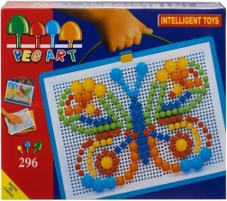 Ši kūrybinė mozaika su smeigtukais atveria vaikams spalvingą kūrybos pasaulį. Iš spalvotų smeigtukų lengvai gimsta drugeliai, gėlės ar saviti originalūs raštai. Rinkinys patogiame lagaminėlyje leidžia paprastai pernešti ir laikyti visas dalis, tad niekas nepasimes, o pramoga gali prasidėti bet kada ir bet kur.