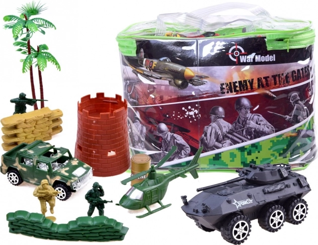 Didelis karinių žaislų rinkinys epiniam ir kūrybiškam žaidimui. Jame yra platus tankų, transporto priemonių, kareivių ir kitos įrangos pasirinkimas, kuris suteikia valandų pramogų ir vaizduotę skatinančių žaidimų.
