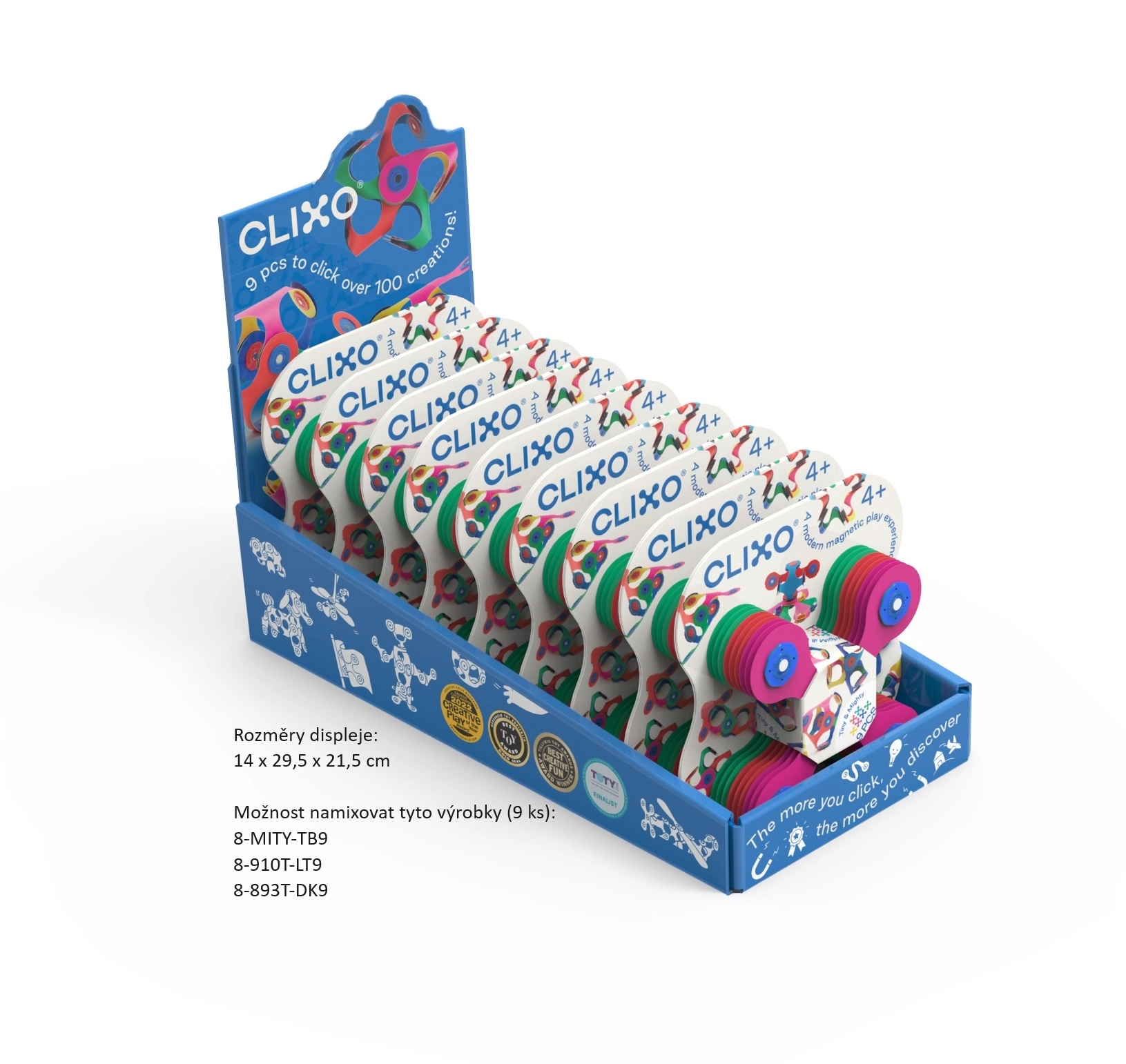 CLIXO Designer smėlio ir pilkos spalvų derinyje suteikia išmanų magnetinį konstravimą kišeniniu formatu. Lanksčios keturlapės formos detalės jungiasi stipriais magnetais, o 360° pasukimas leidžia lengvai prisitaikyti prie bet kurios idėjos. Pastatykite iki 100 skirtingų kūrinių – tiltą, vikšrą, vėjo malūnėlį, dubenėlį ar figūrėles – ir akimirksniu juos išardykite.