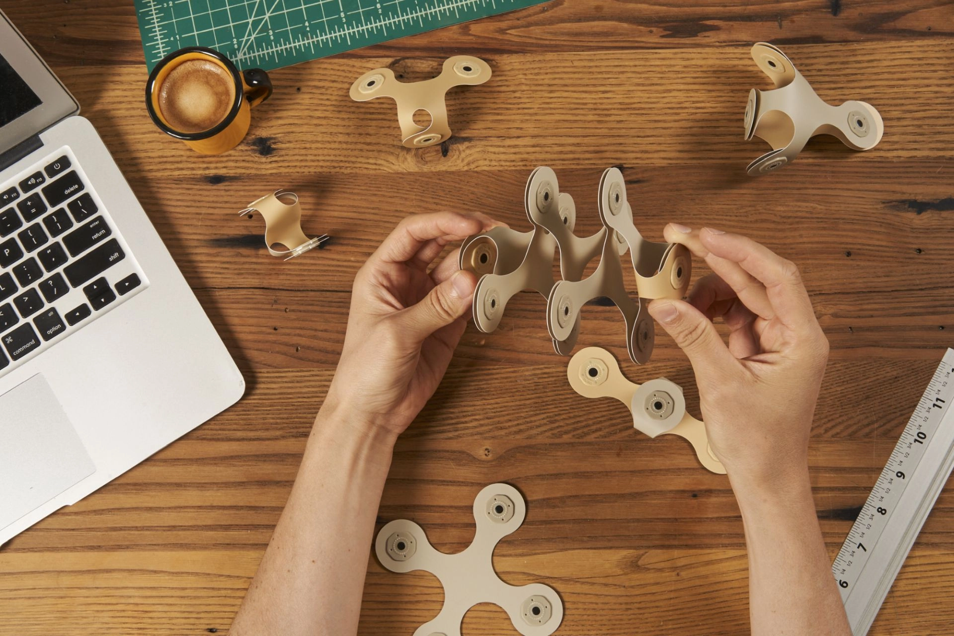 Lanksčios keturlapės detalės su išmaniais magnetiniais lankstais leidžia sklandžiai suktis ir fiksuoti 24 pozicijose, užtikrinant stabilias 2D ir 3D konstrukcijas.