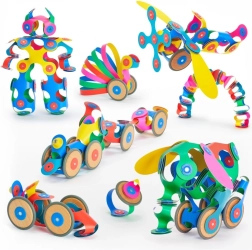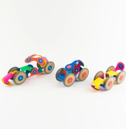 CLIXO Wheel Creator – lanksti magnetinė konstravimo priemonė 6–10 metų vaikams, kuri lavina kūrybiškumą, erdvinį suvokimą ir smulkiąją motoriką. Dėl pasukamų magnetų su fiksacija 24 padėtyse modeliai tvirtai laiko formą ir atlaiko dinamišką žaidimą. Mediniai ratai suteikia judesio jūsų kūriniams – nuo automobilių ir traukinių iki mielų gyvūnėlių – viskas ryškiomis vaivorykštės spalvomis.