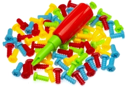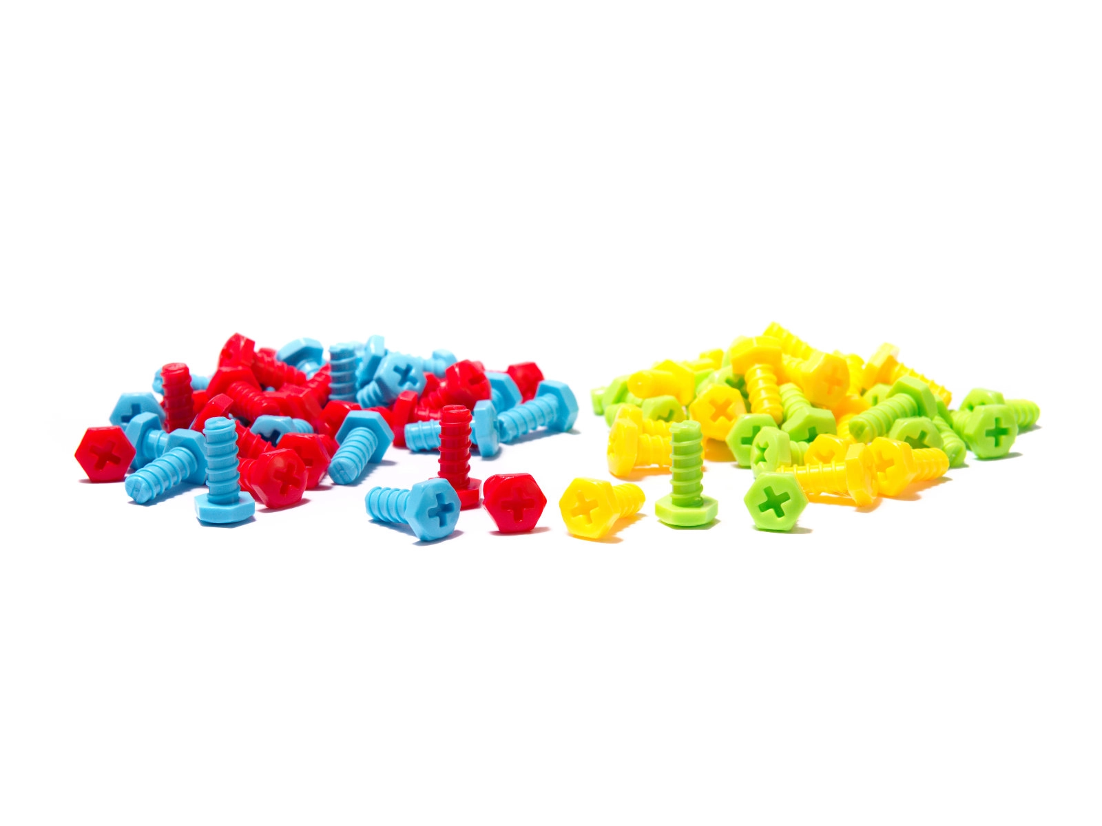 Spalvoti plastikiniai varžtai skatina spalvų atpažinimą ir kūrybinį mąstymą.