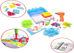 Vaikų konstruktorius su grąžtu ir varžtais – idealus mažiesiems meistrams, norintiems lavinti rankinius įgūdžius ir kūrybiškumą. Šis rinkinys siūlo begales galimybių kurti originalias konstrukcijas ir skatina loginį mąstymą.