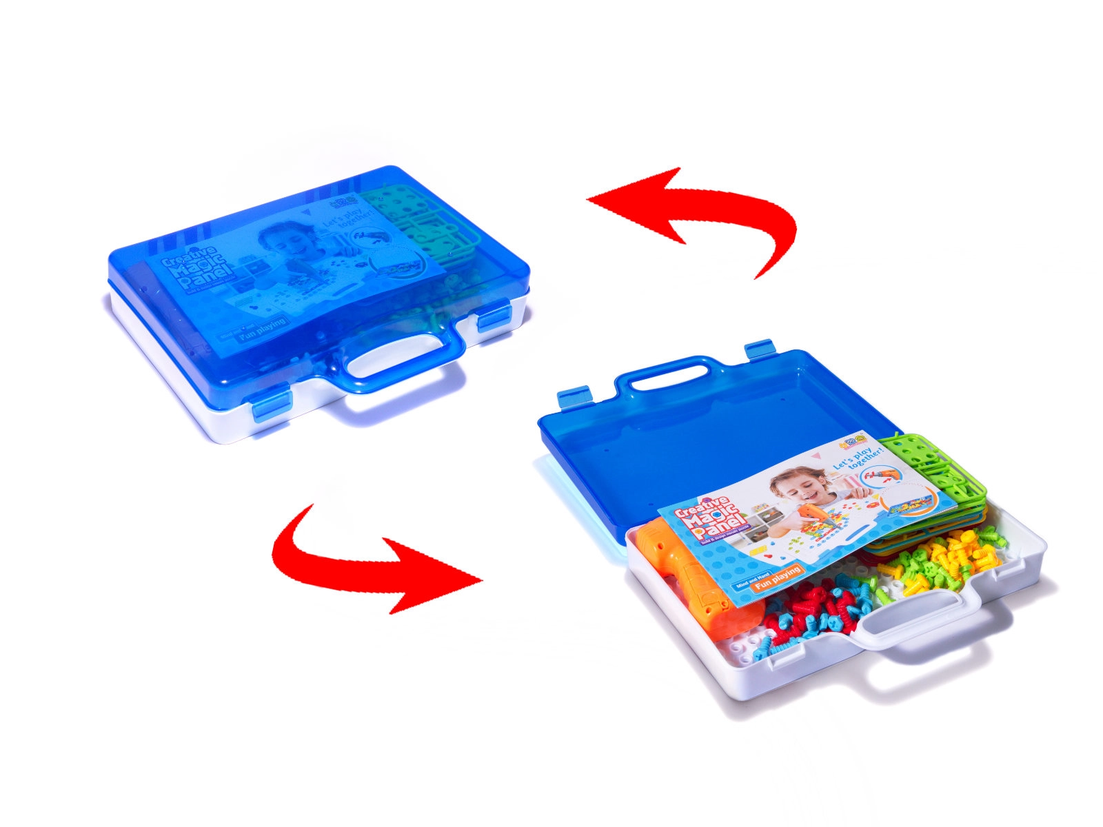 Ši daugiafunkcė lenta tarnauja kaip pagrindas varžtams sukti ir kaip talpus lagaminėlis.