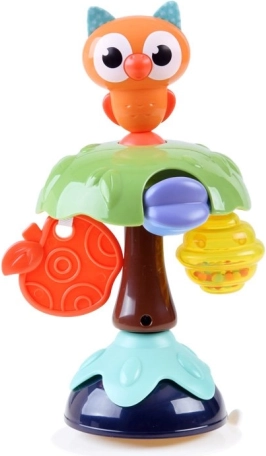Magiškas barškučiukas su pelėdos motyvu pagamintas iš kokybiško plastiko ir turi siurbtuką, kuris leidžia lengvai pritvirtinti prie lygaus paviršiaus, pavyzdžiui, stalo ar kėdės. Šis spalvingas žaislas yra idealus palydovas maitinimo metu ar kasdieniam žaidimui. Barškučiukas leidžia vaikui stebėti, sukti ir judinti žaislą, taip skatinant jo pojūčių ir motorikos raidą.
