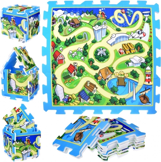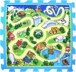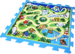 Šis putų kilimėlis/dėlionė su miesto ir kelių motyvu pavers bet kurį kambarį smagia eismo zona. Elementai iš minkštų, bet patvarių putų sukuria amortizuojantį ir saugų paviršių sėdėjimui, ropojimui ir pirmiesiems žingsniams. Vaikai gali vairuoti automobiliukus keliais, mokytis spalvų ir formų bei lavinti fantaziją.