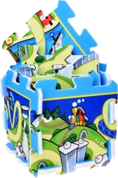 Kiekviena dalis turi užraktinį (dėlionės) kraštą, kad būtų galima greitai sujungti be slydimo. Iš kilimėlio taip pat galima pastatyti 3D kubą arba paprastus namelius, tad žaidimas pereina iš plokštumos į erdvę. Tinka vaikų kambariui, terasai ir sodui.
