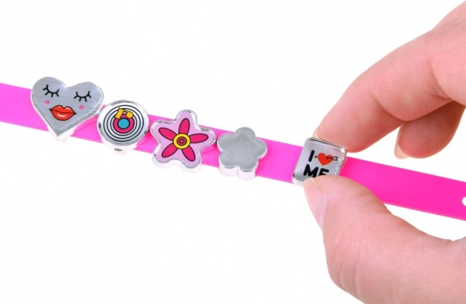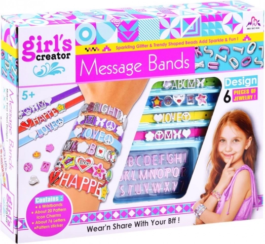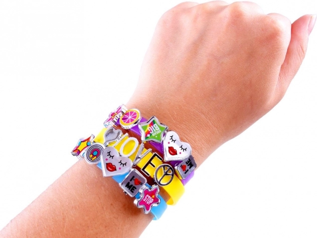 Kūrybiniame rinkinyje yra viskas, ko reikia gražioms ir kūrybingoms apyrankėms kurti. 5 juostelės skirtingų spalvų su reguliuojamu užsegimu leidžia pritaikyti prie įvairių riešo dydžių. Plastikinės raidės ir dekoracijos gali būti laisvai derinamos kuriant vardus, žodžius ir raštus – galimybės beribės! Ši veikla kartu lavina kūrybiškumą, miklumą ir fantaziją.