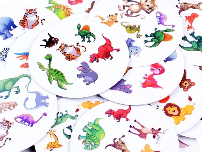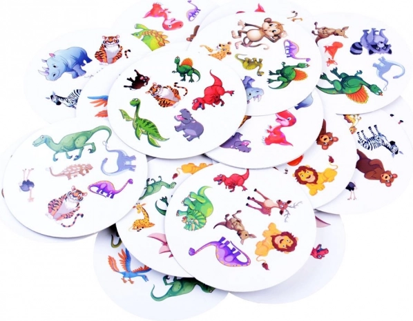 Viduje rasite net 30 spalvingų kortelių su unikaliomis gyvūnų iliustracijomis, tokių kaip dinozaurai, tigrai, drambliai ir liūtai. Šios kortelės ne tik linksmina, bet ir lavina vizualinį atpažinimą bei atmintį.