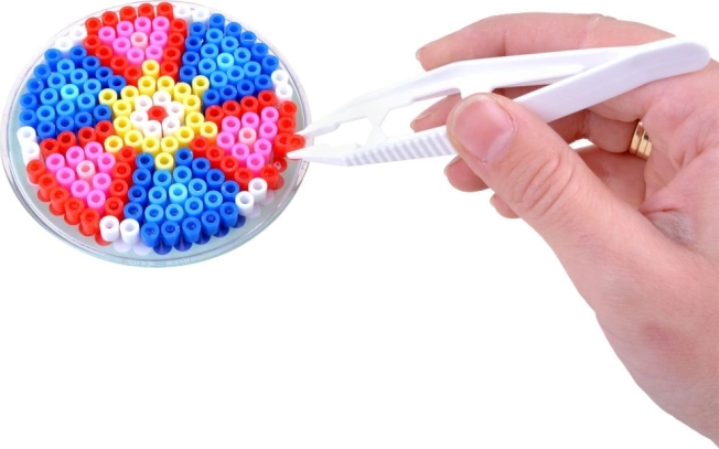 - apie 6000 lyginamų karoliukų, 6 šablonai, 10 padėklų, 12 maišelių su skirtingų spalvų karoliukais, 2 pincetai, 2 pergamentiniai popieriai, laikymo dėžė su skyreliais