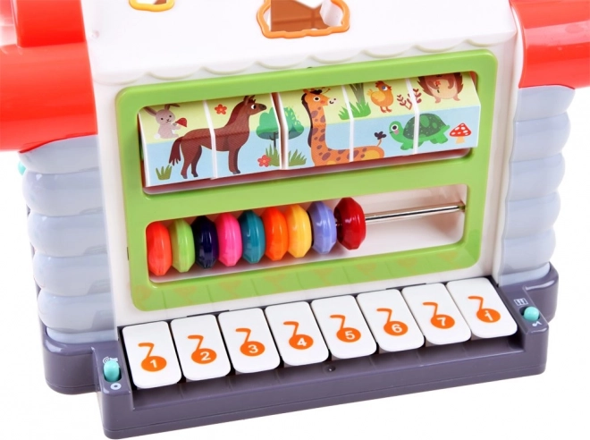 Šis atradimų namelis pagamintas iš kokybiško, patvaraus plastiko patrauklių spalvų. Siūlo gausias interaktyvias funkcijas: įdėjus teisingą kaladėlę pasigirsta atitinkamo gyvūnėlio garsas, mini klaviatūra atkuria gamą ir 7 mėgstamas melodijas, o skaitliukas padeda mokytis pirmųjų skaičiavimo įgūdžių. Dėl raktelio ir durelių vaikai treniruoja smulkiąją motoriką ir akies–rankenos koordinaciją.