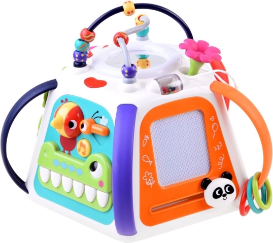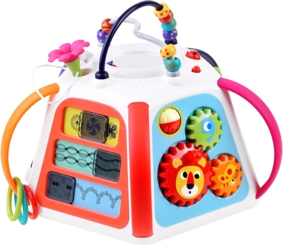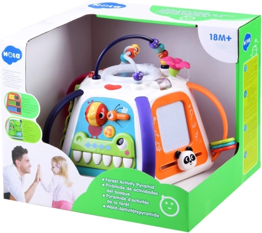 Edukacinis HOLA daugiafunkcis kubas siūlo platų veiklų spektrą viename kompaktiškame žaisle. Kiekviena pusė lavina skirtingus įgūdžius: nuo piešimo ant magnetinės lentelės, per dantračių sukiojimą, iki gyvūnėlių atradimo po lapeliais su garso grįžtamuoju ryšiu. Viršutinę dalį puošia karoliukų labirintas, kuris skatina akių-rankų koordinaciją.