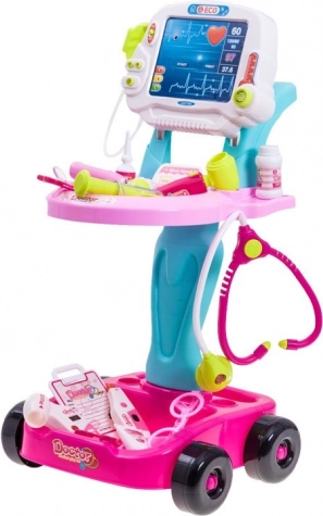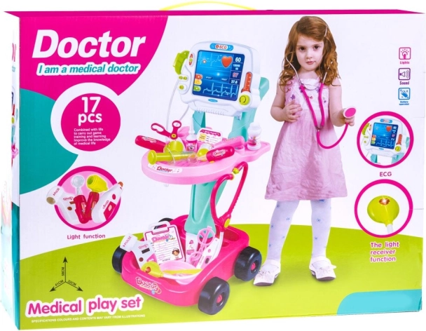 Vaikiškas medicininis vežimėlis su gausiu gydytojo žaidimo įrankių rinkiniu skatina kūrybiškumą, mokymąsi ir socialinius įgūdžius. Į komplektą įeina skydelis su šviesos ir garso efektais, stetoskopas, termometras, tonometras ir kita priedai. Dėka ratukų vežimėlis yra mobilus ir lengvai perstumiamas.