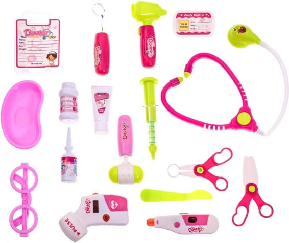 - Medicininis vežimėlis su skydeliu, akiniai, stetoskopas su šviesa, termometras su reguliavimu ir apšvietimu, otoskopas su šviesa, tonometras su reguliavimu ir apšvietimu, neurologinis plaktukas, švirkštas, veidrodėlis su šviesa, 2× žirklės, skalpelis (žaislinis), dubenėlis, dezinfekcinio kremo imitacija, akių lašai (imitacija), vaistų dėžutė (imitacija), gydytojo vardinė kortelė, paciento kortelė