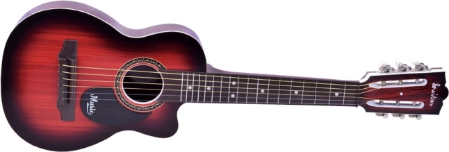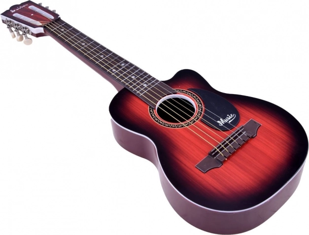 Ši plastikinė vaikiška gitara primena tikrą instrumentą, tačiau yra lengva ir patvari – puikiai tinka pradedantiesiems. Dėl 6 metalinių stygų ir pagrindinio derinimo galimybės ant galvutės vaikai lengvai įsisavins pirmuosius akordus ir ritmus.