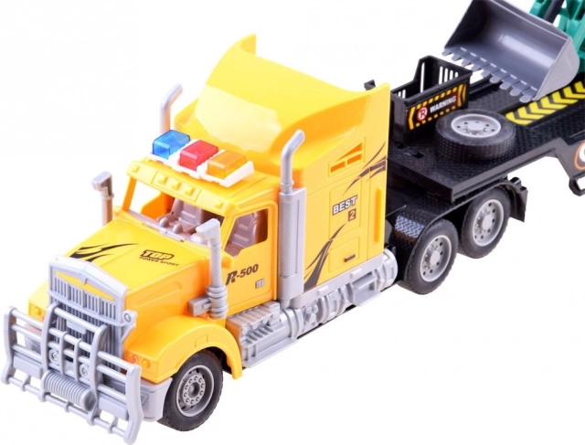 RC vilkikas su žemagrindžiu priekabos puspriekabiu ir traktoriumi su priekaba